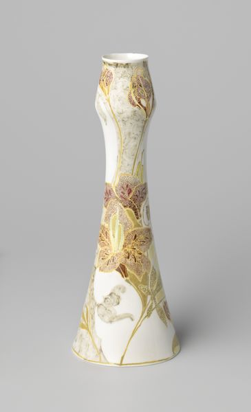 Curator: Let’s turn our attention to a vest of cream-colored satin. Its high stand-up collar, diagonally cut front panels, and applied pocket flaps all point to a garment of considerable status, created sometime between 1800 and 1825. Cream-colored silk thread forms delicate leaf and flower patterns in embroidery across the vest. Editor: Immediately, the monochromatic scheme strikes me. It has an almost ghostly elegance. The subtle floral patterns woven in the fabric are visible as you get closer, creating an ambiance of understated luxury, what’s its impact? Curator: Its surface is incredibly important. The reflective qualities of the satin elevate what would otherwise be a quite conventional design. The way the light interacts with those embroidered details creates visual depth and textural contrast, drawing the eye to precise areas. Editor: Right, beyond the inherent visual allure of its structure and color. Shouldn't we question who wore it and during what moments? Such refined garments were the province of aristocracy. Is this then also emblematic of exclusivity and power? And what about the social environment from which this waistcoat comes? Curator: Absolutely. Considering the broader context, we can see this garment, for all its surface appeal, is the product of very specific social conditions. This would have been worn by a man of leisure and likely privilege. Its design adheres to the codes of Romanticism with its emphasis on nature, evident in the floral motifs. Editor: And it prompts thinking on related class structures; wealth generated, extracted and redistributed from the labor of others to yield such beauty is what stands out. Despite the undeniable elegance, it seems almost irresponsible when looking through that lens. Curator: A valid observation, that forces us to remember the waistcoat is more than simply threads woven attractively. Looking closer at the craftsmanship allows us a further perspective. Note how skillfully the tailor integrated form and design. Editor: By considering its historical implications and intrinsic worth, both beautiful and complex, it serves as a potent historical record. Curator: I agree. It invites us to admire, while encouraging critical reflection.