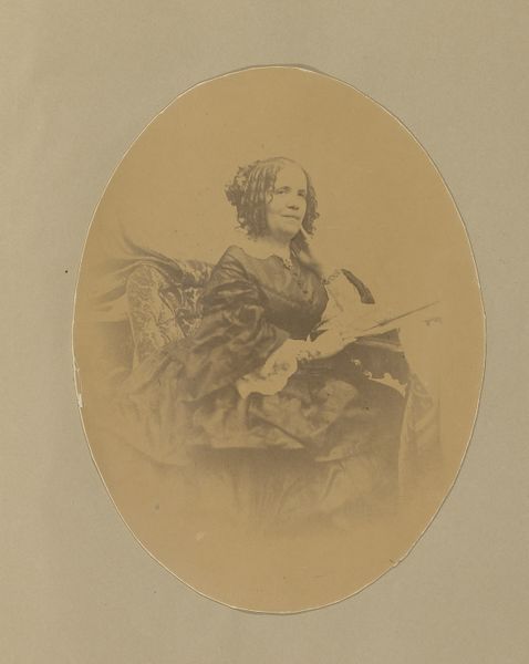 Curator: Here we have a photographic portrait of Peg-a-no-ke-shick, also known as Hole In the Day, a Head Chief of the Chippewa or Anishinabe people from Minnesota. It was taken by McClees Gallery. Editor: The sepia tones and oval frame give it a really antiquated feel, almost like a lost daguerreotype. There’s a definite air of forced assimilation, though. Curator: Absolutely, the imposed Western suit contrasts sharply with his braided hair, a potent symbol of cultural identity. It speaks volumes about the pressures placed upon Indigenous leaders during this period. Editor: It’s a visual representation of the push and pull between tradition and forced integration. He’s caught between worlds, and the photographer captures that tension so poignantly. Curator: Indeed, it's a window into a complex history, a reminder of the individual caught in the crosscurrents of cultural change. Editor: A stark reminder of the cost of erasure, and the continuous fight for self-determination.