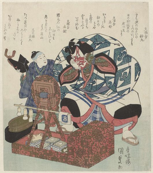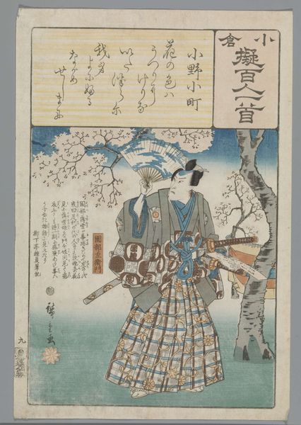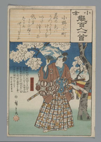 Editor: Here we have Utagawa Hiroshige’s woodblock print, “Emperor Kōkō," from around 1845-1846. It depicts a figure on horseback in the snow. The detail in the rider’s clothing is stunning, but what really catches my eye is the dramatic fall of snow. What are your thoughts on this piece? Curator: It's interesting to consider how this Ukiyo-e print functions within its social context. Hiroshige, while known for landscapes, is here engaging with history painting and the tradition of representing powerful figures. How does this depiction of Emperor Kōkō, obscured by falling snow, play into the public image and perception of imperial authority in 19th century Japan? Does the print either reinforce or subvert traditional notions of power? Editor: That's a really insightful question. The snow almost seems to democratize the scene, blurring social lines... Curator: Precisely. It’s not just about aesthetics; it reflects evolving attitudes toward authority. Consider too, how these prints were consumed – as widely circulated objects available to a growing merchant class. It created a more accessible visual culture, re-evaluating the narratives promoted by ruling elites. Who the image intends to capture, and the influence this image may have had on its audience are essential components of this historical lens. Editor: I never thought about it that way! It’s not just a pretty picture; it’s part of a broader social conversation. Curator: Exactly. Art rarely exists in a vacuum; it's always participating in and shaping cultural discourse. That’s part of its power. Editor: I'll definitely look at art with a wider lens now. Thanks for shedding some light on this piece!