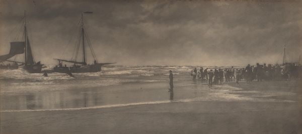 This is a photograph titled 'Strandgezicht van Zandvoort rieten strandstoelen' by Römmler & Jonas. Here we see a beach scene, likely from the late 19th or early 20th century, crowded with people and those peculiar hooded beach chairs. What interests me is the social theater unfolding on this beach. The beach wasn't just a place of leisure, but a stage where social identities were performed and observed. Who had access to this space? Who could afford the fashionable attire and leisure time to be seen here? The hooded chairs themselves speak to a desire for privacy, even while in public. Consider the gaze of the photographer, Römmler & Jonas. What stories are they choosing to tell about this place and its people? Are they reinforcing existing social hierarchies, or offering a critique? These images both reveal and conceal, inviting us to consider the complex relationship between representation and reality. How might we reimagine this space today, challenging the social norms of the past and creating a more inclusive future?