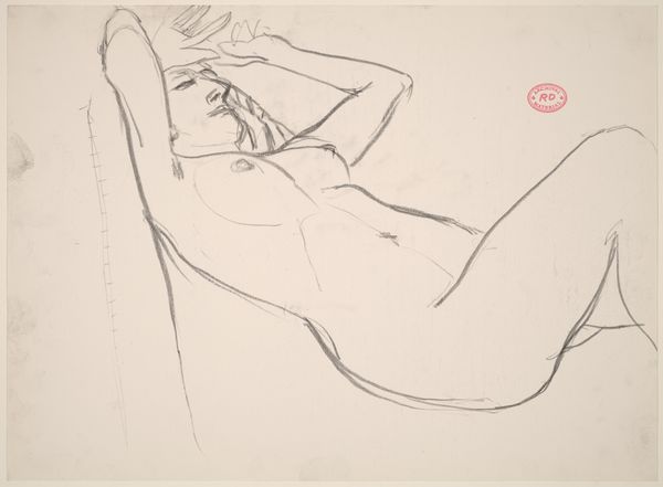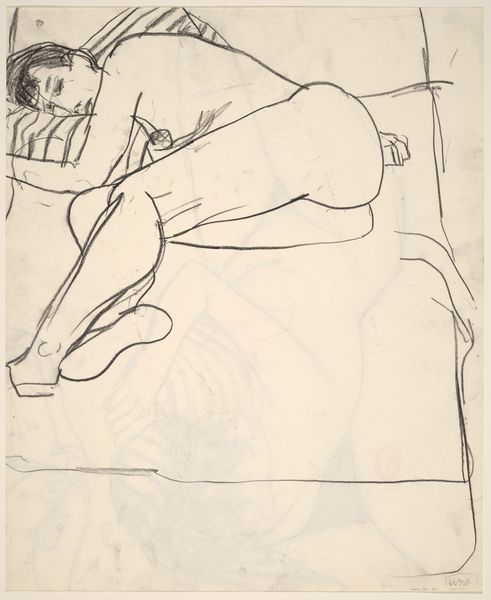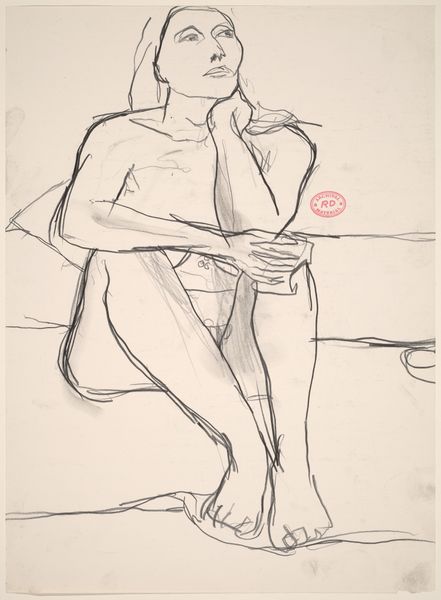 This drawing of a female nude resting on a striped pillow was made by Richard Diebenkorn, but we don't know when. It's all about the line, isn't it? Scratchy, searching, and super direct. You can really see the artist working through the image, trying to capture the weight and form of the body with the simplest of means. Look at the way he renders the hair, a thick scribble of dark lines. It's almost like he's attacking the page, but in a good way. The lines are so raw and immediate, creating a real sense of presence. There's a vulnerability to the way the figure is posed. It reminds me a little of Matisse, with that same emphasis on line and form, but Diebenkorn has a more restless energy, like he's always pushing against the boundaries of representation. And isn't that what art's all about?