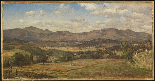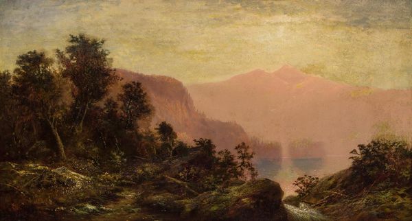 John Frederick Kensett painted this landscape of Bergen Park, Colorado, using oil on canvas, but we don't know exactly when. This image belongs to a well-established tradition of landscape painting that became popular in the United States during the 19th century. These works captured the expansive vistas of the American frontier but were also entwined with ideas about national identity, westward expansion, and the relationship between humans and nature. As railroad lines opened up access to the West, artists followed, often finding patronage from the railroad companies themselves. Here, the soft light and tranquil composition evoke a sense of harmony and sublime beauty, but it's worth remembering that these images also served to promote a particular vision of the American West that justified settlement and resource extraction, often at the expense of indigenous populations and the environment. To learn more, consult historical societies, archives, and libraries specializing in the history of the American West.