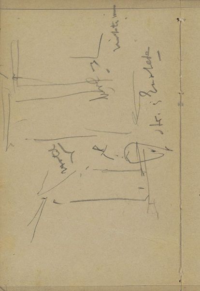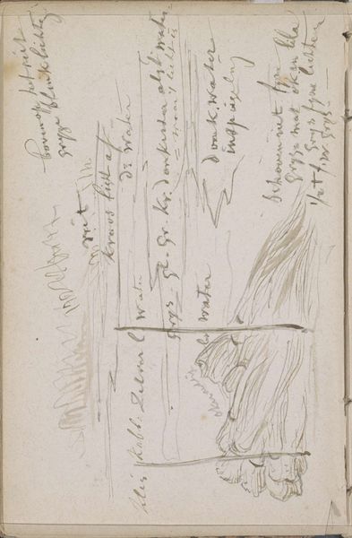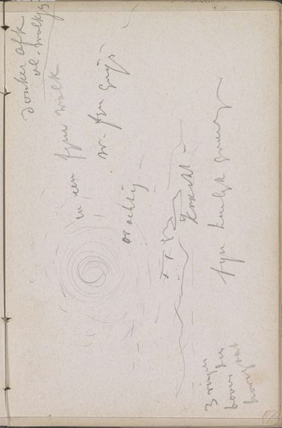 Editor: So this sketch, "Studie, mogelijk een gezicht in Amsterdam," is by George Hendrik Breitner and dates to around 1886-1923. It's a pencil drawing, currently residing here at the Rijksmuseum. Looking at it, it feels... unfinished, ephemeral. Almost like a half-remembered dream. What do you see in this fleeting landscape? Curator: Fleeting is spot on! It’s the ghost of a moment, isn't it? Breitner was capturing the pulse of Amsterdam, not with posed portraits, but these raw, immediate impressions. It's not about perfect lines, it's about feeling the dampness in the air, hearing the clatter of hooves on cobblestones. You almost catch a whiff of canal water, wouldn't you agree? Editor: I think so! The impressionistic style really comes through here. Is that what sets his work apart? Curator: Absolutely. Breitner walked a different path. He was more interested in documenting real life, the grittiness and beauty of it, with a camera *and* his pencil. His quick studies allowed him to embrace those ephemeral moments which other artists often glanced over in favour of composed depictions. It feels more like lived experience, not a stage play. It's more about feeling than exact replication, wouldn't you agree? Editor: Definitely, and that rawness really shines through. It makes you feel like you're standing right there on the canal bank with him. Curator: Exactly! It’s a visceral experience. It whispers secrets of the city. What story do you think those simple lines are telling? Editor: I’m seeing the water most distinctly. Just like standing there and focusing on the waves. Thanks! Curator: My pleasure. It’s fascinating how so little can evoke so much, isn't it? Breitner’s brevity reminds us that even the smallest glimpse can hold the biggest stories.