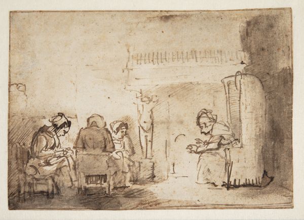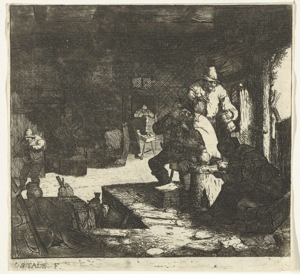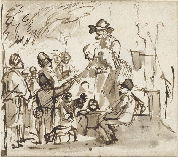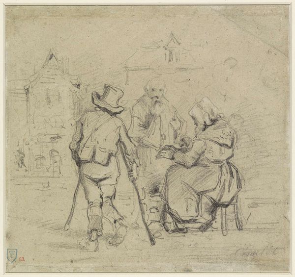 This drawing of a tavern interior was created by Eugène François de Block, using graphite on paper. The choice of such a humble, readily available material speaks volumes about the artist's intent. Here, the inherent qualities of graphite – its ability to create subtle gradations of tone and texture – are used to great effect. De Block masterfully captures the boisterous atmosphere of a tavern, populated by figures refusing to pay their dues. The rough, sketch-like quality of the graphite lends itself perfectly to the subject matter, hinting at the grit and grime of everyday life. Consider the social context: taverns were spaces for workers to unwind and socialize, yet also sites of potential conflict and exploitation. De Block's choice of graphite, a material often associated with preliminary sketches rather than finished artworks, underscores the immediacy and rawness of the scene. It's a reminder that art can be found not only in grand gestures, but also in the quiet observations of everyday life, and a medium that doesn't need to be precious or luxurious to be powerful.