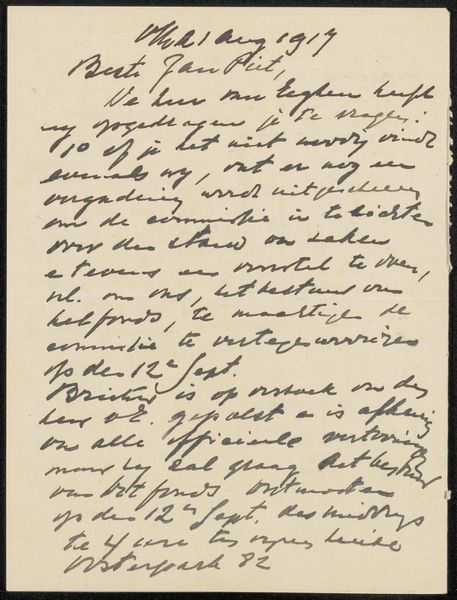 This letter to Jean Charles Joseph Drucker was written in ink on paper in 1942 by Jan Striening. The very act of writing, of putting pen to paper, contains a certain symbolic weight—it’s a gesture of communication across distance and time. Consider the slant of the handwriting itself, the pressure of the pen against the page. Each stroke carries the writer’s emotional state, a physical manifestation of their thoughts. The act of writing as a means of conveying the self has deep roots, echoing ancient scribes and illuminated manuscripts. We see this yearning for self-expression resurface in modern graffiti or coded messages—a primal urge to leave one's mark. Writing becomes a form of self-preservation; a way to transcend the immediate and connect with something larger. In the cyclical dance of history, this intimate letter finds its place as a testament to human connection and resilience.