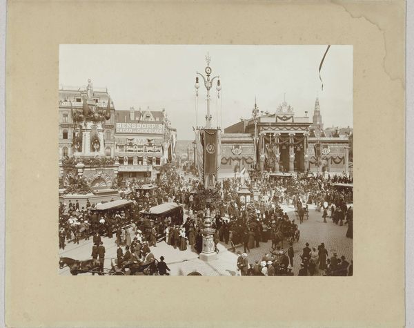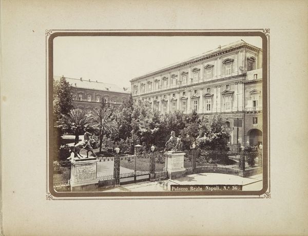 Editor: Here we have Roberto Rive’s photograph of the “Monument op het Piazza dei Martiri in Napels,” likely taken between 1860 and 1900. The monument itself feels very…imposing. All that neoclassical sculpture, looming over the cityscape. What do you see in this piece, from your perspective? Curator: I see a potent example of how public art reinforces dominant power structures. This monument, built in a period of intense political upheaval in Italy, performs a very specific kind of nationalist narrative. Think about who is being memorialized, and whose stories are being erased. Who is a martyr and who isn't, and why? Editor: So, it's not just about remembering the fallen, but about solidifying a particular version of history? Curator: Precisely. This square and this monument visually narrate a version of Italian unification, a Risorgimento seen through a very particular lens. Consider the placement of the column – dominating the urban landscape, it asserts a certain ideological dominance. We must question whose interests this serves and who benefits from such a constructed memory. Editor: The lions especially stand out as symbols of power and control, but what do you think of how the photographer frames this work? Curator: Rive's composition itself participates in this process. By carefully selecting the viewpoint, the photographer emphasizes the monument's grandeur, creating an image that supports the prevailing narrative. Early photography often was put to use for exactly this purpose. Editor: That's fascinating. I hadn't considered how the photograph itself could be part of that narrative construction. It really opens my eyes to the layers of meaning embedded in this seemingly straightforward image. Curator: It's a reminder that art, even documentary photography, never exists in a vacuum. Everything from the monument’s location to the photographic viewpoint serves ideological purposes. Editor: Thanks, this helps me look at these images with new questions in mind!