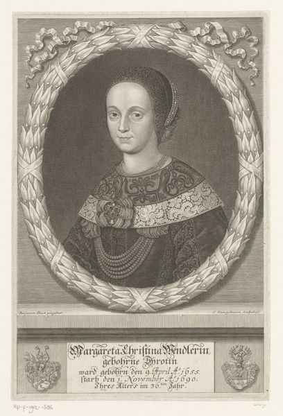 This is an engraving of Mary, Queen of Scots, made by John Goldar in England, and published in 1784. It was designed as an illustration for Harrison's edition of Rapin's History of England. The image itself presents Mary in a dignified, yet somewhat softened manner. Consider the context: she was a controversial figure, a Catholic queen in a Protestant country, eventually executed for treason. This print, made centuries after her death, participates in the ongoing construction of Mary's image. The delicate lines of the engraving, the ornate frame, and the inclusion of her royal coat-of-arms all work to reinforce her status. The "History of England" frames her as a figure within a broader national narrative. To truly understand this image, we'd need to delve into the publication history of Rapin's history, and the social and political forces at play in late 18th century England. What purpose did it serve to re-circulate images of Mary? Art is always embedded within layers of social and institutional context.