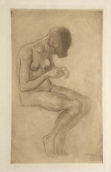 Editor: This drawing, "Portrait of Mangbetu Woman" by Alexandre Jacovleff, seems to capture a real person in a way that feels both classical and very present. What social and cultural ideas do you see playing out in this work? Curator: This piece prompts us to consider the politics of representation within ethnographic art. Jacovleff, though undoubtedly skilled in his craft, was also a product of his time. How do you think his status as an outsider might have influenced the way he chose to depict this woman? Editor: I suppose he might have focused on what he saw as "exotic" or "different". I do wonder about her gaze. She seems proud, but it’s hard to say if that’s his projection or her reality. Curator: Exactly. The Western gaze often romanticized or objectified non-Western subjects, framing them within pre-existing colonial narratives. Jacovleff’s portraits were exhibited, shaping public perception of the Mangbetu people. Does this drawing challenge or reinforce such power dynamics, in your opinion? Editor: I see your point. There’s a fine line between appreciating cultural details and perpetuating stereotypes. Maybe both are happening here. The drawing is skillful, and shows an interesting culture through jewelry and bodily modification. It makes you wonder if Jacovleff’s images reinforced stereotypes, and whether such portraiture empowers its subject. Curator: Absolutely, understanding the historical context and being aware of the power dynamics inherent in portraiture, particularly ethnographic portraiture, allows us to view the work with critical nuance. Editor: I learned that portraits reflect as much about the artist and the intended audience, as they do about the subject. Thanks! Curator: Precisely, viewing art with such scrutiny illuminates our present.