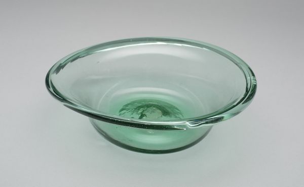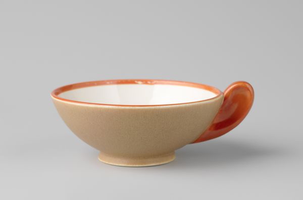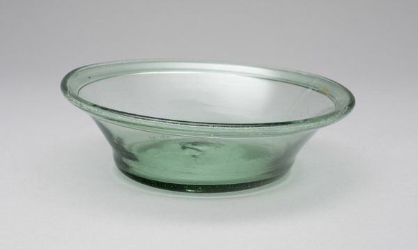 Editor: So, this is "Mixing Bowl" by Corning Glass Works, made around the 20th century. It's a simple photograph, but the stark red against the white interior and gray background is very striking. What are your initial thoughts on this piece? Curator: This bowl, seemingly mundane, actually holds significant weight when viewed through the lens of domesticity and gender roles. Consider the post-war era: advertisements, particularly in media like photography and television, often depicted women solely within the domestic sphere, primarily defined by cooking and homemaking. Editor: So, you’re saying that this image speaks to the expectations placed on women during that period? Curator: Exactly. The photograph isn't just capturing a bowl; it's capturing a societal expectation. Who was primarily using this bowl? Who was being marketed this ideal of perfect domesticity? This bowl becomes a symbol of those complex, often contradictory, pressures. It can be viewed as an artistic interpretation of the cultural norms being imposed at the time. What kind of emotional tone is it striking with you? Editor: I hadn't really considered the social context beyond the bowl itself. It seemed like a very basic piece of industrial design. I guess that the tension between the utility of it and the social role it embodies is now very palpable to me. Curator: Absolutely. Understanding those contexts allows us to read deeper meanings and recognize the invisible power structures inherent even in the most seemingly ordinary objects. Hopefully we can learn from the social injustice that it represents! Editor: Thank you so much for this analysis! I now look at the Mixing Bowl as so much more than a simple container!