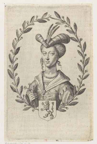 Editor: Here we have "Buste van vrouw met diadeem, naar rechts gewend," or "Bust of a Woman with Diadem, Facing Right," created in 1613 by Antonio Tempesta. It's a baroque engraving, quite small, housed at the Rijksmuseum. The detail is impressive; the shading gives her form real presence. What formal elements stand out to you? Curator: Consider first the starkness of line and the absence of color. This necessitates a keen understanding of form and shadow to convey depth. Note how the artist uses hatching and cross-hatching to model the contours of her face and neck, creating a palpable sense of volume. What of the lines create a dramatic silhouette against the blank space of the background? Editor: Well, the lines tracing the snake diadem, the braided hair, and ornamented dress seem quite distinct, giving this Baroque-style lady an air of power, perhaps a hint of mythology. Curator: Precisely. Observe the artist's calculated distribution of light and dark, establishing focal points, thereby guiding the viewer's eye throughout the composition. We might look, as well, at the balance achieved: the profile creates asymmetrical lines that create balance in what is not shown to the negative space, allowing an emphasis on her gaze. How does the overall structure relate to its meaning? Editor: That's something to think about, thanks. Seeing the attention to the technical elements enriches how I appreciate this artwork! Curator: Indeed, such attention will deepen anyone's regard for even what they do not know.