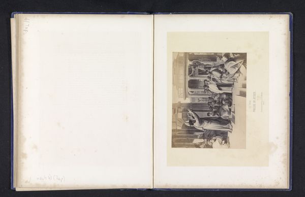 This is a spread from a photo album with two black and white photographs mounted on its surface, seemingly recording ‘payday in a village in Grobogan’. The album page is toned a warm cream colour and a thin line, in blue, is used to create a kind of frame around each of the mounted photographs. I like the casual gesture of these blue lines and the way they are slightly wonky, not quite perfect in their registration. This evokes for me an understanding of artmaking as a process of accumulation and layering; a kind of bringing together of disparate elements through chance encounters, rather than aiming for a fixed outcome. In the way the album pages are used as a surface, and the photographs are carefully arranged in relation to the written captions, this piece reminds me of the work of John Baldessari, who also used photography, writing and the surface of the canvas in combination to create meaning through juxtaposition and association. Ultimately, art is a conversation across time. What do you think these images are saying to each other?