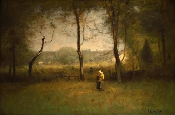Karoly Ferenczy's painting, "Man Sitting on a Log," presents us with a scene of quiet introspection through the careful application of paint on canvas. A figure, cloaked in shadow, is seated upon a horizontal log. The painting is dominated by earth tones and greens, evoking a sense of being enveloped by nature. Ferenczy masterfully uses light and shadow to create depth and mood. Notice how the dappled light filters through the leaves, casting an interplay of light and shadow on the ground and the figure. This technique not only enhances the visual texture of the scene but also adds to the contemplative atmosphere. The composition is structured around horizontals and verticals – the log, the trees – creating a sense of stability, yet the figure's leaning posture introduces a subtle dynamism. The choice of subject and setting invites us to consider themes of solitude, the relationship between man and nature, and the act of reading as a form of escape or reflection. The materiality of the paint itself contributes to this dialogue, reminding us of the artist's hand in shaping our perception.