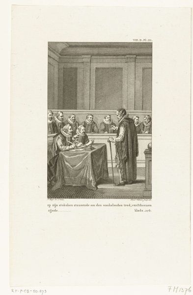 Curator: The work before us is titled "Luther leest de verhalen van de evangelisten," which translates to "Luther Reads the Stories of the Evangelists." It was created sometime between 1822 and 1845 by an anonymous artist and currently resides here at the Rijksmuseum. It is an engraving. Editor: My first impression is how still it all feels. Even with the activity of a library, there's a sense of quiet contemplation—almost staged. Like everyone is playing their role. Curator: Precisely. The print participates in a long tradition of history painting and the historicizing of Luther in the 19th century. Images like this contributed to shaping public perceptions, positioning Luther as a central figure in the Reformation and a champion of religious thought. Editor: And visually, it's like a stage. Luther is, literally, centered. Other scholars seem arranged to either engage with or support him. He’s deep in thought, almost romanticized in his pose. Does this idealized vision serve a particular purpose? Curator: Absolutely. This visual representation of Luther emphasizes his intellectual rigor. By showing him immersed in the Gospels, the artist emphasizes Luther's commitment to the primary texts of Christianity. Editor: I see what you mean. All that bookish labor seems designed to build his image. Did engravings such as these serve some sociopolitical need in 19th-century society? Curator: Definitely. Prints like these helped reinforce cultural values, playing a key role in solidifying historical narratives, and of course bolstering support for the Protestant faith in certain areas of Europe at this time. The format is inherently reproducible, making the narrative extremely shareable across a broad audience. Editor: Makes you wonder about the layers of narrative, right? We see the historical Luther, then an artist's interpretation, and then *we* stand here centuries later interpreting that interpretation. It’s like a game of telephone through time. Curator: I agree; there's a reflexive element to the viewing experience itself, now as then. Each viewer contributes to the meaning of an artwork. Editor: Well, I’m walking away seeing not just Luther but the mechanics of image-making and the shaping of public opinion. Curator: Yes, an artwork of social importance which resonates on many levels, even in today's very different social and political landscape.