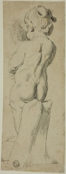 Curator: This sketch of a "Plaster Cupid" by Paul Cézanne, residing here at Harvard, immediately strikes me with its raw, unfinished quality. Editor: Indeed, the visible hatching gives a sense of the artist's process, highlighting the materiality of both the plaster model and the graphite on paper. Cézanne's labor is quite present here. Curator: Absolutely. The deliberate, almost sculptural use of line to define form is what interests me most. Notice how he uses shadow to create depth? Editor: I'd argue that shadow also invokes the social context of academic training. Plaster casts like these were central to that process, democratizing access to classical forms for students who could not afford or access original sculptures. Curator: That's a valid point. His deviation from perfect classical form allows a focus on the abstract nature of form itself. Editor: Cézanne's reinterpretation of tradition truly offers a fascinating glimpse into his practice and artistic concerns. Curator: Precisely, seeing the mark-making in such a direct way allows me to appreciate the composition, the cupid really emerges from the page.