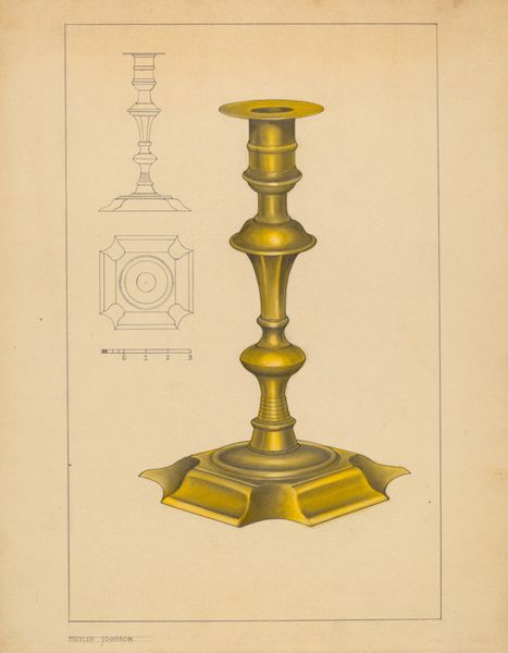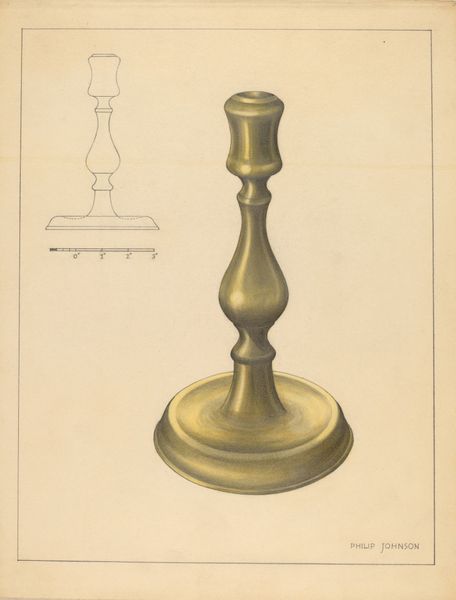 Arthur Wegg created this drawing of a Candlestick, using graphite and colored pencil, sometime in the late nineteenth or early twentieth century. Technical drawings like this were a staple of the curriculum at art and design schools. In Britain, these institutions arose in response to industrialization, seeking to unite artistic creativity with manufacturing. By teaching students to accurately depict objects, institutions like the one Wegg attended sought to elevate the quality and design of British-made goods in a competitive global market. Looking closely, you can see the guidelines and measurements Wegg used to render the object precisely. The drawing, in its accuracy, elevates the candlestick, suggesting the cultural value attached to design and craftsmanship in an era of mass production. To understand this image better, researching the history of design education in Britain and the role of government in promoting industrial design would be invaluable. This drawing is a relic of a time when art was seen as a tool for economic and social progress.