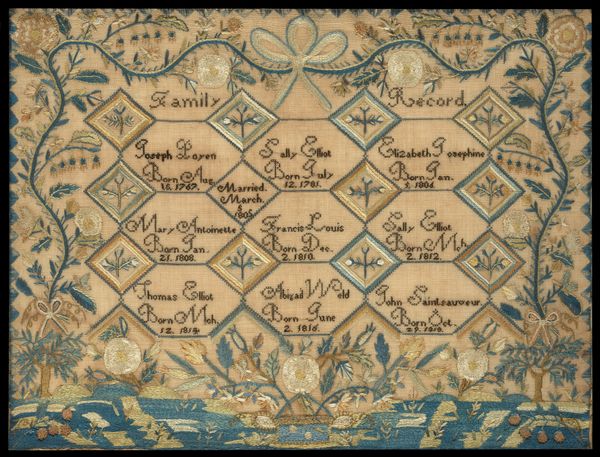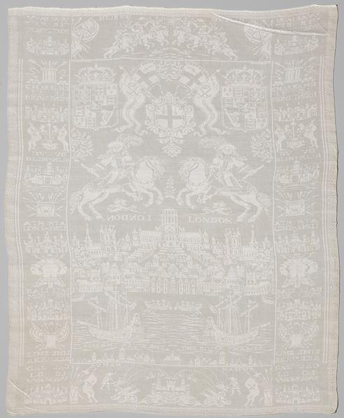 Curator: Just in front of us, we have a delicate lace pillowcover, estimated to be from the 19th century, currently held in the collection of the Minneapolis Institute of Art. Editor: It’s strikingly intricate. The density of the patternwork and the fine ruffled edge give it an ethereal quality. Almost dreamlike. Curator: Exactly. Let's consider the labour involved. Nineteenth-century lace production was intense, almost always involving women working for incredibly long hours to create these objects. This cover probably wasn't made by someone who would sleep on it. Editor: No, definitely not. Lace of this quality signifies status and privilege, showcasing wealth within the home. Its vulnerability becomes part of the point; such an intricate object required resources to protect. How was lace like this consumed or marketed during its time? Curator: By the 1800s, machine-made lace started appearing, meaning handmade lace gained additional value as a luxury item, especially bobbin lace like this, where threads are painstakingly intertwined using bobbins on a pillow. The designs would follow trends, like the floral and geometric motifs we see here, driven by elite taste. Editor: So its function extends beyond mere decoration; it’s visual rhetoric. This pillowcover tells us a lot about Victorian values and material aspirations. Also, I am curious, what is its afterlife inside museum, how it gains and transforms its values to appeal modern taste? Curator: I see it more as an echo of past skills and craftsmanship that is very relevant nowadays. Despite industrial advances, we keep admiring pieces made through intensive labor that machines cannot emulate. And, beyond fashion and the market, it embodies domesticity. Editor: Very true. Thinking of how many hours went into crafting this, and imagining the hands that worked on it—it shifts my perspective entirely. I would love to find out about those artisan women and how their history has shaped present realities. Curator: Precisely! Viewing something functional—a pillowcover—through that lens elevates our understanding and appreciation of it, recognizing the skills involved.