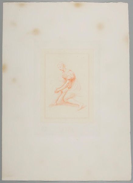 Editor: This is Lunettes, by Paolo Toschi. I find the figures intriguing, but the image overall has a detached, almost clinical feel. What symbols or hidden meanings do you see in it? Curator: The embrace of the children with the dog evokes a sense of innocence and loyalty, archetypal themes found across cultures. The lunette below, with the figure bathed in light, could symbolize enlightenment or divine knowledge. What connections do you draw between these two scenes? Editor: Perhaps the connection is the innocence of childhood versus the mature knowledge of adulthood? It’s interesting how the artist places them in relation to each other. Curator: Precisely. The interplay between these images invites us to contemplate the stages of life and the enduring symbols that resonate throughout our collective memory. It’s a fascinating look at how symbols continue to carry cultural meaning. Editor: I agree! It definitely gives me a new perspective on classical symbolism.