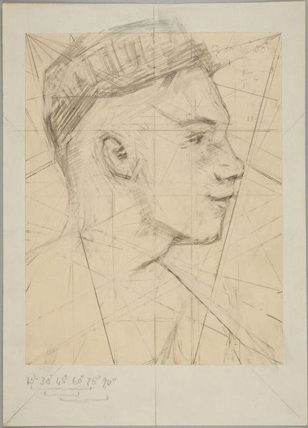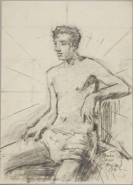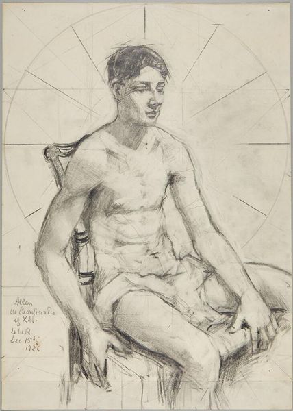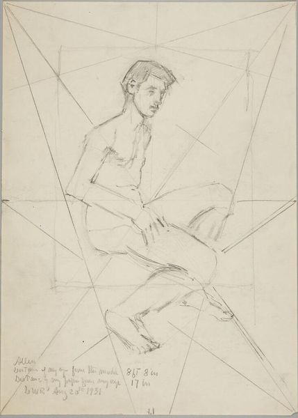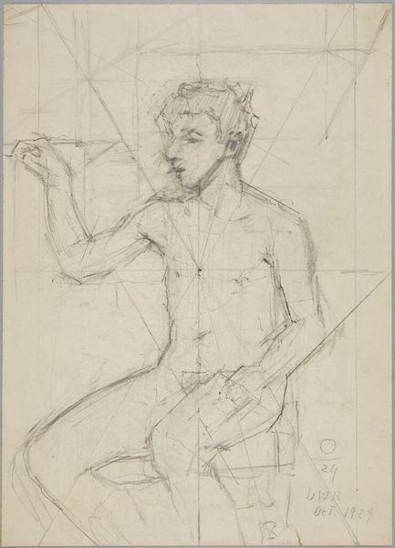 Curator: Denman Waldo Ross's "Male Nude Turned One-Quarter Right" presents us with a figure study, rendered in pencil, currently residing at the Harvard Art Museums. Editor: My initial response is to the raw immediacy of the lines. The artist barely sketches an idea, but it feels powerful. Curator: Indeed, the grid-like underdrawing, visible beneath the figure, speaks to a deeper investigation into form and proportion, echoing classical ideals of beauty. What does this kind of construction signify to you? Editor: The grid adds layers of meaning. The artist uses it as a foundation, but also reveals its presence, exposing the bones beneath the skin, so to speak. It evokes a sense of vulnerability. Curator: It's like the artist, and perhaps even the subject, are laid bare. Editor: It’s more than bare, the artist is showing the artifice while striving to reveal an essential truth. I leave with renewed curiosity about the nature of reality and representation.