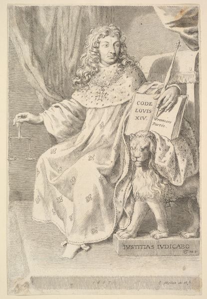 Curator: Here we have an engraving titled "His Royal Highness James Duke of Yorke and Albany…", dating roughly from 1680 to 1685. It's part of the collection at the Metropolitan Museum of Art. The portrait commemorates James, the Duke of York, brother to King Charles II. Editor: Oh, the pomposity practically leaps off the page! He's got that slightly vacant royal stare, draped in more fabric than seems strictly necessary, I imagine what his tailor's bill must have been... Curator: Precisely! The materials matter. As an engraving, it suggests mass production, and therefore accessibility to a broader, though still elite, audience. These images were about projecting power and solidifying social standing through printed reproductions. Look at the heraldry and symbols—all reinforcing the Duke's lineage and authority. The engraving process allowed for meticulous detail. Editor: It's undeniably impressive craftsmanship. I'm captivated by the rendering of the lace, those luxurious, improbable curls. And yet, all that meticulous work seems in service to a rather… chilly effect. He feels distant, a figure to be admired, feared even, rather than someone to connect with. Curator: I’d say that's precisely the point of such commissions at the time! While ostensibly depicting an individual, these were exercises in crafting ideology, carefully constructed for political consumption, reproduced on paper to cement his image throughout society. Think about the engraver too, their workshop and techniques, as crucial parts of this whole spectacle. Editor: Fair point. And I’m now also thinking about how fragile something like a print on paper can be, versus all the weight of royal history it's attempting to carry. Curator: Exactly, these prints acted as documents, evidencing the power dynamics of the time. How such images impacted daily life then, and our readings of them now, opens fascinating areas to explore about production, and society in seventeenth century Britain. Editor: Mmm. Makes you ponder about image creation today, too. All that digital polish striving for the same god-like remove… but rendered virtually instead of physically labored over by skilled tradespeople. Curator: Indeed, food for thought. I've found revisiting it through the lens of production helps reframe the Duke, not as an individual but as part of a broader framework. Editor: I’m left with a newfound appreciation for the work that goes into maintaining a stuffy image—literally.