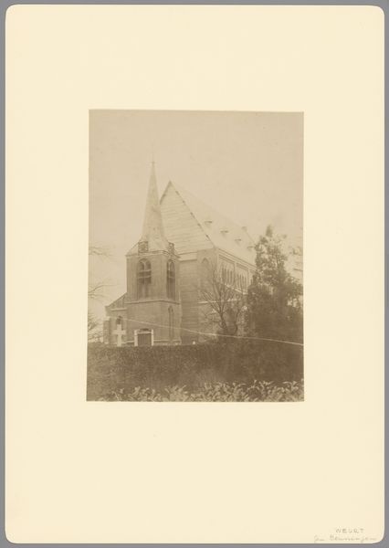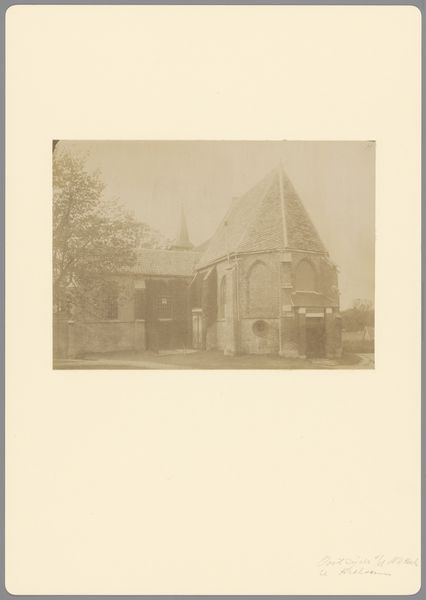 This photograph of the former Catholic church in Horssen, made by an anonymous artist, likely for Monumentenzorg, shows the building in tones that feel both solid and dreamlike. The artist’s process here feels like one of quiet observation, capturing not just the church's physical form but also a mood, a sense of place steeped in history. The image is built on subtle shifts of light and shadow, where texture is muted, and the surface almost disappears into a haze. It's how the light catches on the edges of the building and fades into the sky that interests me most. This blurring speaks to the transient nature of memory and the way buildings themselves age and change, becoming vessels of stories over time. It reminds me of the work of Eugène Atget, who documented the streets of Paris with similar tenderness. This image, like Atget's photographs, invites us to consider the layers of history embedded in the everyday and to find beauty in the quiet, unassuming corners of the world.
