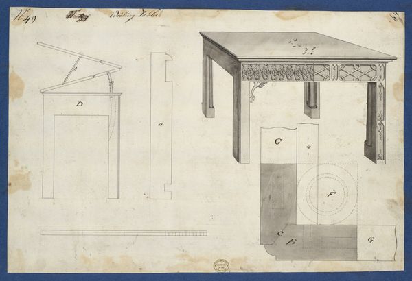 This is Thomas Chippendale's "Cabinet, from Chippendale Drawings, Vol. II," an ink and watercolor drawing now held at the Metropolitan Museum of Art. Chippendale, a leading furniture designer in 18th-century England, was known for blending various styles, including Gothic, Rococo, and Chinese influences, reflecting the era's fascination with the exotic and the global reach of British trade. This design presents a cabinet elevated on a stand, its clean lines and geometric patterns a nod to the period’s evolving aesthetic tastes. The very concept of a cabinet is deeply tied to class and gender. Historically, cabinets were status symbols, displaying wealth and taste, often managed by women as keepers of the household's valuables and personal items. Chippendale’s designs democratized high-end furniture through his pattern books, allowing a wider audience to access fashionable designs. Yet, it also speaks to the complex dynamics of labor and consumption in a colonial context, where the raw materials and production processes often relied on exploitation and unequal trade relationships.