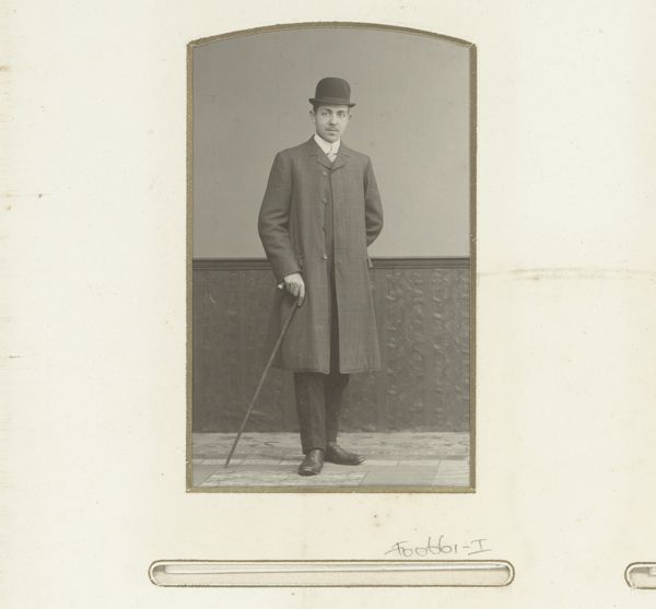 This photographic print shows two men with hats and walking sticks by Stephanus Adrianus Schotel. Now, I think of artmaking as a dance, a process of call and response between the artist and the material. The sepia tones here, with their limited tonal range, force the artist to make subtle adjustments and decisions. Look at the space between the two figures. It's not just empty; it’s charged with a kind of unspoken tension, almost like they're sharing a secret joke. This area, like a single brushstroke in a painting, affects how we see everything else. There is a warmth to the image, from the brown colour, that suggests a particular time or season. You get the sense that this is an image of real people, not models or actors, making it feel more intimate. This photograph reminds me a bit of August Sander, another portraitist who captured the essence of his subjects. Both photographers understood that art isn't about definitive answers but about embracing ambiguity and inviting multiple interpretations.