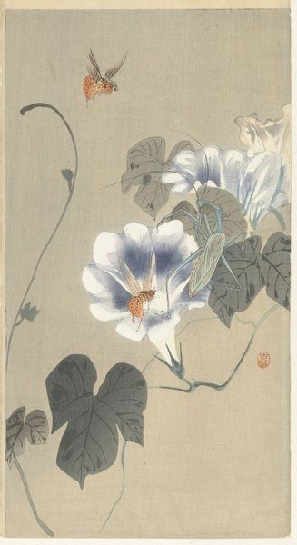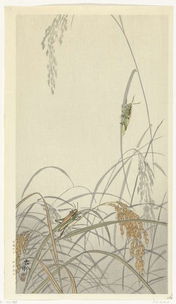 Ohara Koson made this print of a Songbird at hay bundle, and well, it's just beautiful, isn't it? I think that one of the things that makes it so striking is how Koson simplifies the image. The hay bundle has this light yellow-ish glow, while the bird is detailed, but with restraint. It’s like he’s saying, “I know how to paint a bird, but what’s more interesting is how it sits within this quiet composition.” I find my eyes drawn to that bird. Its placement, perched on the thin branch, creates a focal point that anchors the whole scene. The gray background is subtle, almost disappearing, and it flattens the space, so there's not a lot of depth here. It's amazing how he manages to make it so poetic, using a few colours and simplified forms. Koson reminds me of other Japanese printmakers, like Hiroshige, but with a more modern sensibility.