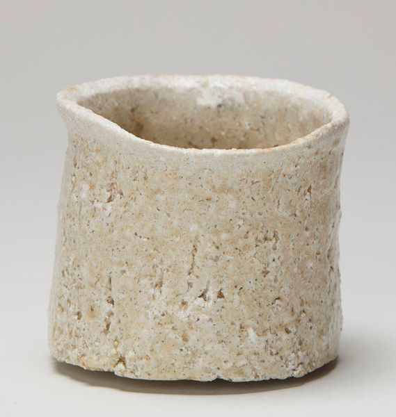 Editor: This is a Sake cup, called ‘guinomi’, created in 2012 by Tabuchi Tarō. It's ceramic, and at first glance, I notice the wabi-sabi aesthetic – that appreciation for imperfection. What can you tell me about it? Curator: That's a great start! We often view ceramics, especially tea and sake wares, through a lens shaped by centuries of socio-cultural practice. Think about the formal tea ceremony: a powerful statement of cultural identity for Japan, but what does it mean when this is encountered and interpreted in the West? Editor: I guess I haven’t considered the politics of it much. What role does its display in a museum play? Curator: Museums, traditionally spaces of Western power, began collecting and exhibiting Asian art in the 19th century, a time of intense colonialism and trade. Consider this guinomi displayed in a museum: Is it venerating the object and Japanese culture, or exoticizing it for Western consumption? Does placing a functional object, imbued with ritualistic meaning in its native culture, on a pedestal alter its purpose? Editor: That’s a good question, because now that you point it out, its 'everydayness' is really apparent. It doesn't strike you as immediately precious, right? Curator: Exactly. Tarō is making an interesting comment on value, accessibility, and artistic status here, particularly in relation to a globalized art market. He's reminding us that these objects exist in a complex network of meaning, complicated even further once it enters into museum culture. Editor: That’s something to think about, especially in how the Minneapolis Institute of Art displays such a seemingly humble cup. I hadn't considered its positioning as cultural artifact with historical and political baggage. Curator: It requires a step back, for sure, to understand the history influencing our interpretation of the piece.