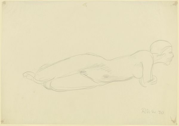 Editor: So, here we have Isaac Israels's "Reclining Female Nude," a pencil drawing from around 1915-1925, housed at the Rijksmuseum. It feels very immediate, a quick study maybe? The woman seems so relaxed. How do you interpret this work within the context of its time? Curator: This sketch speaks volumes about the changing social and artistic landscape of the early 20th century. The directness, the seemingly casual pose—it departs from the highly idealized and often moralizing nudes of the previous century. We’re moving toward a greater acceptance, or at least a visual engagement, with the body as simply that – a body. The artist’s decision to present it as a pencil drawing underscores this new vision of freedom. Editor: Freedom from what exactly? Curator: Freedom from the expectations of academic painting, from the constraints of representing an idealized woman for a specific (usually male) gaze. This shift reflects broader cultural shifts—the rise of feminism, changing attitudes toward sexuality, and art movements embracing direct expression over traditional formality. Editor: So, you’re saying it reflects broader shifts in society beyond just aesthetics? Curator: Precisely! And consider the Rijksmuseum itself. By collecting and exhibiting this kind of work, what statement do you think they were making about art's role and audience in the early 20th Century? About how and to whom art should speak? Editor: Hmm, they’re implicitly validating the artist’s perspective, pushing back against convention. I never thought of it like that before. I see the pose and medium, and the location as an archive. Curator: Yes, by placing it in the collection it becomes accessible to new audiences, thereby validating the social and cultural shift in viewing art that it presents. I've also reconsidered the artist intention as the new audiences see his piece.