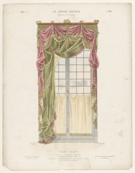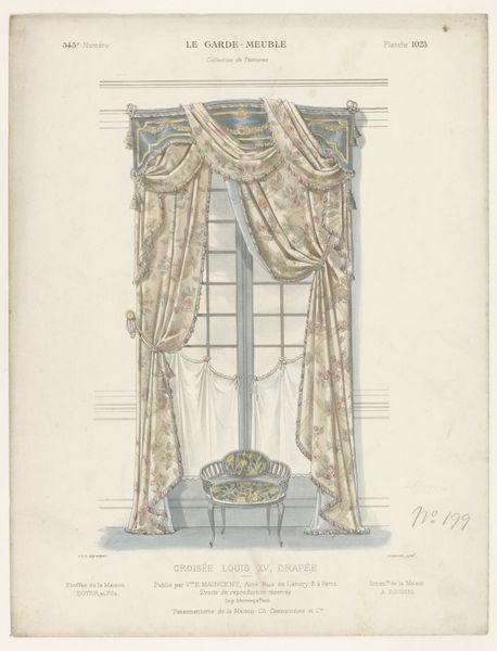 Léon Laroche’s 'Venster met gordijnen' is a rendering in blue and gold of a window display and the making of it, the draping of fabrics, is what’s on display. The rendering of the fabric has a cool opacity, a flatness, yet the artist captures the essence of folds and pleats. It's like a stage set, an interior, but also a design for one. The blue is matte, like a fresco, but the gold pops, suggesting light and shadow. See how the tasseled swag hangs just so, each ripple and curve carefully considered. Look closely at the borders, where you'll see details like floral patterns with subtle irregularities, hints of the artist's hand. This reminds me of David Hockney's set design, how simple gestures can create a world. It's a testament to the enduring power of art to transform the ordinary into something extraordinary.