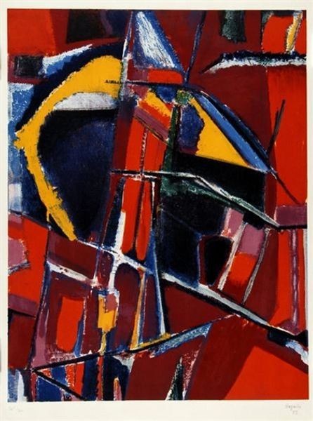 Andre Lanskoy made this vibrant abstract painting, titled "Les murs disparaîtrons," with oil paint on canvas. Oil paint, derived from pigment mixed with oil, is a traditional art material, valued for its versatility and rich colors. The painting is composed of bold, geometric forms and a dynamic interplay of colors, where the textures and inherent qualities of oil paint contribute significantly to its visual impact. Lanskoy built up layers of paint, creating depth and luminosity, while the brushstrokes add a tactile quality to the surface. The process of layering reflects the artist’s attention to materiality, as he skillfully manipulates the paint to create a harmonious composition. Although it is abstract, its title, which translates to "the walls will disappear," brings to mind social contexts such as liberation and the breaking down of barriers. Appreciating the importance of materials, making, and social context allows for a richer understanding of the artwork's meaning.