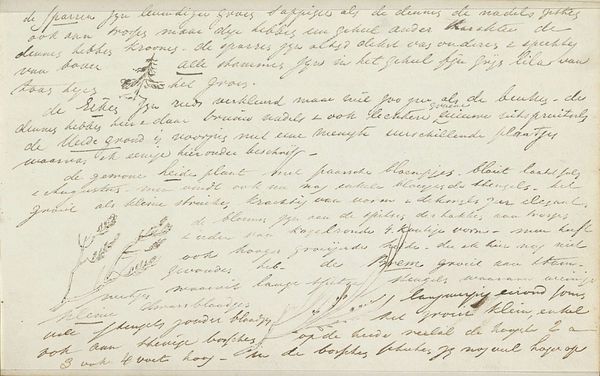 Curator: Looking at this artwork, I immediately appreciate the subtle rendering of light and shadow, primarily conveyed through delicate ink strokes. Editor: It's indeed a captivating work, especially considering the socio-political environment of 1843, when Johannes Tavenraat created this drawing, titled “Paddestoelen,” which translates to Mushrooms. The artist really engages with naturalism and romanticism here. It’s currently housed in the Rijksmuseum. Curator: I see those tendencies quite strongly. The drawing consists of multiple studies of mushrooms meticulously rendered in ink on paper. The varied shapes and sizes indicate careful observation and, in the end, an elegant arrangement. Editor: Exactly. Botanical drawings such as this one provided vital documentation during a period of burgeoning scientific inquiry and colonial expansion. Representing nature through an almost objective lens was viewed with prestige. Were the drawings more romantic depictions, however, this may demonstrate a pushback to colonialism as nature-based and nature-centric philosophies developed. Curator: An insightful connection. For me, the most interesting part is the way he renders each mushroom distinctly. Some are barely emerging from the ground, mere caps, while others have fully unfurled their gills and their presence. The artist creates a delicate sense of depth within a tight space. Editor: And one cannot but think how that “tight space” for observation affects the larger narrative surrounding the drawing. How are social issues embedded here as the artist carefully details those various fungi? Curator: Indeed, its success resides in this fine balance—careful detail blended with artistry and observation of subject in conjunction with its position within larger ecological systems. Editor: It's incredible how a simple sketch of mushrooms can reveal a network of fascinating dialogues about science, nature, and human society. Curator: It encourages us to view botanical renderings such as “Paddestoelen” as valuable and meaningful.