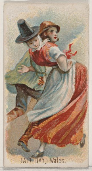 This chromolithograph called 'Christmas in Merry England', made by W. Duke, Sons & Co. between 1870 and 1920, offers a charming glimpse into holiday festivities. The most striking symbol is perhaps the maypole, adorned with flowers, carried by the female figure. The maypole is steeped in ancient pagan rituals, symbolizing fertility and the renewal of life, a motif that predates Christianity yet finds itself intertwined with Christmas celebrations here. This echoes similar syncretic processes observed across cultures where older, indigenous beliefs are assimilated into new religious contexts. Think of the Christmas tree itself, originating in pre-Christian winter solstice celebrations. The image is more than a mere depiction of festive cheer; it embodies the enduring human need to find joy and connection during the darkest time of the year. The maypole, like the Christmas tree, has undergone a transformation, imbued with new meanings, yet its essence remains—a testament to our deep-seated longing for renewal and hope. Thus, the emotional power of the image resides in this convergence of ancient symbols and contemporary festivities.