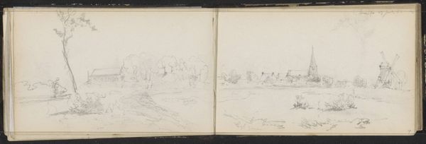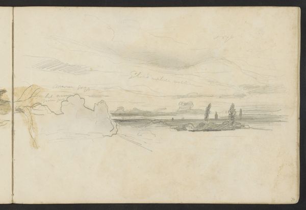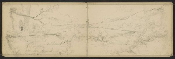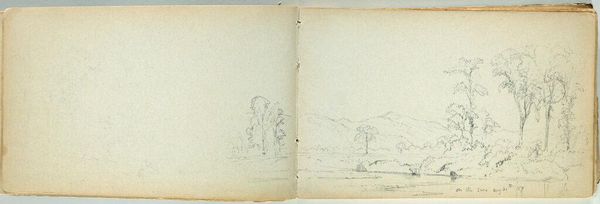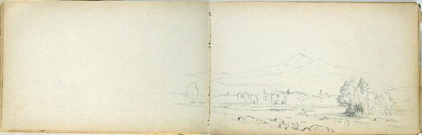 Editor: Here we have Benjamin Champney’s "Partial Landscape," a pencil sketch on paper. I'm struck by the contrast: one side is completely blank, while the other depicts a very serene waterside scene. What do you make of this diptych? Curator: It speaks to the complexities of representation, right? The blank page signifies absence, a void, while the landscape suggests presence, perhaps a colonialist impulse to capture and own nature. The division highlights power dynamics, what is seen and unseen. Editor: That’s fascinating! So, the “partial” nature of the landscape could be a commentary on incomplete narratives? Curator: Exactly. And whose narrative is centered? Champney was part of the White, male-dominated Hudson River School. Whose stories are erased in his landscapes? Editor: I hadn't considered that. Thanks, that gives me a lot to think about! Curator: It's about questioning what we see, and whose perspective it reflects.