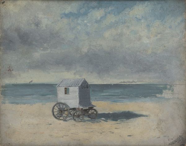 Henri Gervex made this painting, ‘The Beach at Trouville,’ with oil paint on canvas. These are very traditional materials, of course, but consider the way Gervex has handled them. Look closely, and you can see how the surface has been built up with a layering of brushstrokes, capturing the heavy clouds, cold water, and wet sand. The paint is thick in some areas and thinned in others, giving the surface a lively, almost breathing quality. There's also a clear contrast between the industrial production of paint and canvas, versus the handmade strokes that make up the image. This tension is important because, at the time, paintings of leisure and the bourgeoisie were becoming commonplace. 'En plein air' or 'outdoor' painting was made possible by paint being produced and sold in tubes, which facilitated the mobility of the artist. In this context, Gervex's brushwork can be seen as an attempt to reclaim a sense of individual artistry in the face of mass production. It reminds us that the materials and the making are crucial to understanding the scene that’s depicted.