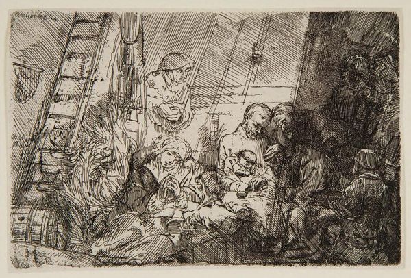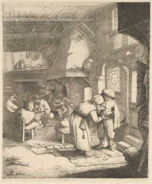 Adriaen van Ostade created this etching, "The Peasant Settling His Debt," in the 17th century, a period marked by the Dutch Republic's growing economic power and social stratification. Van Ostade, a painter of peasant life, offers us a glimpse into the financial realities of the working class. The scene captures a transaction—a woman meticulously counting coins into a peasant’s hand. This exchange isn’t just economic; it speaks to the vulnerabilities of a class often at the mercy of economic systems. The surrounding figures, drinking and gambling, highlight the ever-present temptations and distractions that could easily derail one's efforts to climb out of debt. Van Ostade’s choice to depict the intimate, and perhaps humiliating, act of settling a debt invites us to consider the emotional weight of poverty and the human dignity at stake in such transactions. It's a scene that encourages us to empathize with the often-unseen struggles of everyday people. The artwork subtly questions the social structures that perpetuate such disparities, reminding us of the personal stories behind economic statistics.