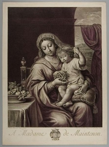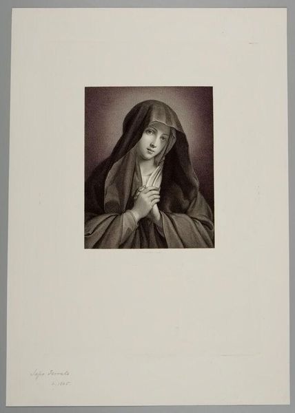 Editor: This is Ignazio Pavon's "Loving Mother," currently at the Harvard Art Museums. The image of the praying Virgin Mary evokes a sense of serene devotion, but I wonder, what role did images like this play historically? Curator: These devotional images served a vital purpose, particularly within the Counter-Reformation. They reinforced Catholic doctrine and provided accessible models of piety in the face of Protestant challenges. How do you think the artist uses composition to enhance this effect? Editor: I see how the soft lighting and downward gaze create an intimate and relatable figure. It's interesting to consider how art was actively used in religious and political debates. Curator: Precisely. And it highlights the power of visual imagery in shaping public sentiment and reinforcing institutional power structures. It's fascinating to unpack the politics of imagery, even in seemingly simple works like this.