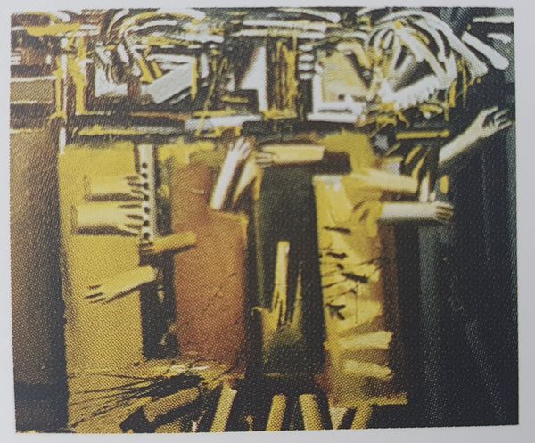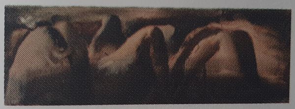 Oleg Holosiy made "Melody", which is 80 by 100 cm and painted with oil. This painting doesn't give you everything all at once. It's dark, but there are white and yellow marks breaking through. It’s got a hesitant, searching kind of quality, which is also what makes it feel so alive. The surface of this painting is really interesting. It feels built up and rough in places, like he was really pushing the paint around. And then other areas are super thin, almost transparent. You can see how the materiality itself becomes this emotional language. Look at that little cluster of marks in the upper center—they almost glow against the darkness. I keep thinking about the gesture of making them. Holosiy died young, but it makes me think of another artist, maybe someone like Kiefer, who also wrestled with darkness and history on a big scale. It's like this conversation across time, where artists are picking up on each other's frequencies, trying to make sense of things that are hard to put into words.