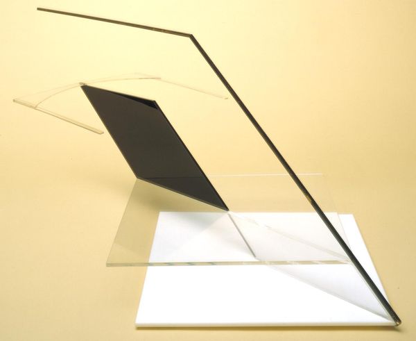 Editor: This is David Hall's "Nine," part of the Tate collection. It’s a series of square forms arranged on the floor. What strikes me is the stark contrast between the pristine white squares and the wood floor. What's your take on this piece? Curator: Hall's work challenges our assumptions about art's role in public spaces. How does this arrangement, spread across the floor, redefine the viewer's experience compared to a traditional, framed artwork hung on a wall? It invites interaction, doesn't it? Editor: It does! It makes me think about the role of the gallery itself, almost like the floor becomes part of the art. Curator: Exactly! And think about the socio-political context of minimalist art in the late 20th century. How did this movement aim to democratize art by stripping away traditional hierarchies? Editor: It's interesting how these simple forms can be so loaded with meaning about space and accessibility. Curator: Indeed. It makes you reconsider what you expect art to *do* in a public institution.