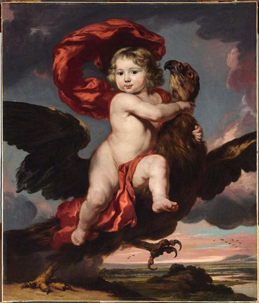 Eustache Le Sueur created this oil on canvas painting of the Abduction of Ganymede, a mythological scene, during the Baroque period in France. In it, we see Ganymede, a beautiful Trojan youth, being carried off to Mount Olympus by Zeus in the form of an eagle. Le Sueur, working in the 17th century, was navigating a world of immense social stratification, religious reform, and emerging scientific rationalism. His depiction of Ganymede, a figure central to stories of male love and desire, exists within a context that both celebrates and suppresses non-normative sexuality. The dramatic composition—Ganymede’s vulnerability, his embrace of the powerful eagle—invites us to consider the themes of power, desire, and transformation. In this canvas, the artist invites us to reflect on how beauty, mythology, and identity intersect across time.