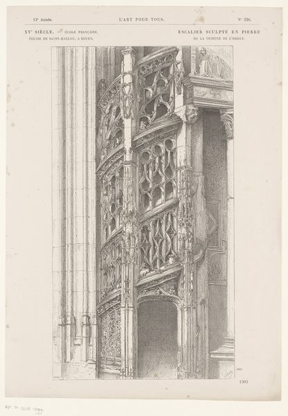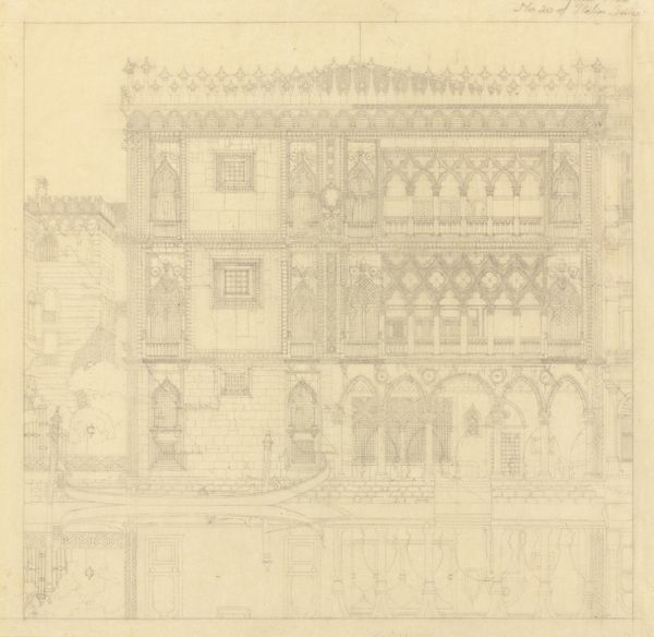 Editor: So, here we have "The Balcony," an etching by John Taylor Arms, created in 1930. I'm struck by how incredibly detailed it is, almost photographic in its precision. There’s a real sense of aged grandeur, even decay, in the architecture. What are your thoughts on this piece? Curator: It's interesting to consider Arms's choice of subject matter during this period. The 1930s saw widespread social and economic upheaval, yet here is a meticulously rendered image of European architectural refinement. Don't you find it curious that an American artist chose to focus on the timeless beauty of Venetian architecture instead of depicting the realities of the Great Depression, for example? Editor: I hadn't thought about it that way. Was there a market for these kinds of nostalgic images in America at the time? A desire to escape, maybe? Curator: Exactly! The art market, especially for prints, catered to a middle class that aspired to European culture. Arms's technical skill also elevated the status of printmaking as a legitimate art form, competing with painting. We can see how this work contributed to the appreciation of architectural beauty. Is it more than mere escapism? Could it also function as a kind of cultural preservation? Editor: That's a great point! It's almost like he's documenting a place that might not last forever. So, he’s really using his art as a medium to solidify architectural cultural heritage and its preservation. Curator: Precisely. I also notice the distinct lack of people. That lends the drawing this almost surreal quality, a static monumentality removed from everyday life. Does it give you any thoughts? Editor: That definitely amplifies the timeless feel of the piece, emphasizing the architecture as a subject in and of itself, rather than just a backdrop for human activity. I see so many new facets of the piece through your analysis. Curator: And I appreciate you bringing this work to our attention. It reminds us that art often operates within a complex web of social, economic, and political contexts.