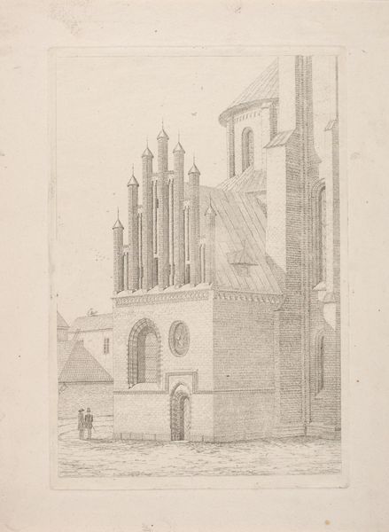 Curator: This drawing from 1666, titled "Ontwerp voor de toren van de Nieuwe Kerk te Amsterdam," offers us a glimpse into a proposed, though ultimately unrealized, addition to Amsterdam’s cityscape. Rendered in ink, print, and engraving on paper, the design is credited to an anonymous artist. Editor: It has such an elegant, yet oddly unfinished feel. The meticulous detail in the church and its surroundings contrasts with the ethereal, almost detached quality of the tower design floating above. Curator: Indeed. This piece reflects the architectural ambitions of the time. Amsterdam was booming in the 17th century, a hub of commerce and culture, and grand structures like this new church tower were envisioned to represent that power. Its visual presence was designed to impress, speaking directly to Amsterdam’s cultural influence. Editor: So, was it a matter of money? Shifting political winds? Or perhaps simply a lack of public will? What halted this proposed expression of Baroque power? Curator: All plausible factors, no doubt, but perhaps also evolving tastes. While the Nieuwe Kerk exists, as you can see, the depicted bell tower design didn’t quite mesh with the evolving social and political values of the time, especially in its proximity to the royal palace, where the elite consolidated political power. Consider how art institutions shape taste, as they too express political intentions. Editor: I find that idea so provocative, how public spaces, architecture, and art mirror power dynamics, the dialogue between the imagined tower and its surroundings – a statement, rather than just brick and mortar. Curator: Precisely. It's a fascinating "what if," inviting us to consider how urban spaces reflect cultural values and political statements. The piece captures a specific moment in time, revealing both ambition and restraint. Editor: I'm left pondering the significance of unrealized visions—how they continue to shape our understanding of history, perhaps even more so than completed projects. Curator: And ultimately, a visual testament to a city's continuous transformation and complex dialogues.