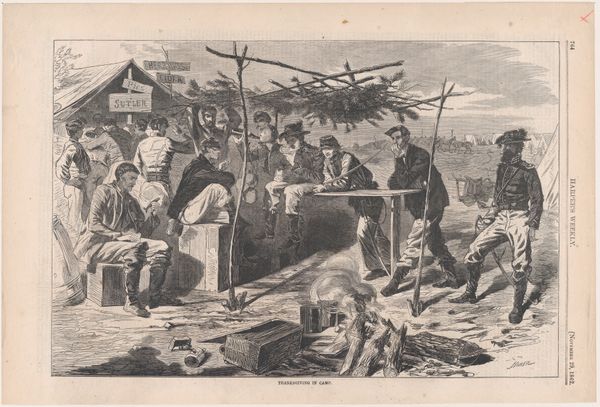 Winslow Homer created this print, "Our Watering Places – Horse Racing at Saratoga," for Harper's Weekly in 1865. Published towards the end of the Civil War, it captures a scene of leisure and social gathering at the Saratoga race track. What strikes me here is how Homer depicts a world of gendered spaces and social hierarchies. The foreground is dominated by women in elaborate dresses and hats, observing the race from a privileged vantage point. Their presence speaks to the changing role of women in post-war society, where leisure and public life became increasingly accessible to the upper classes. The artist focuses on the spectacle of wealth and leisure, but it’s a very specific slice of society that is represented. Homer was keen on capturing scenes of contemporary life, and his images often reflect the cultural values and social dynamics of his time. Although the print seems like a simple depiction of a day at the races, it subtly reveals the complexities of class, gender, and identity in a rapidly changing America. You can almost feel the excitement of the race and the fashionable atmosphere of the event.