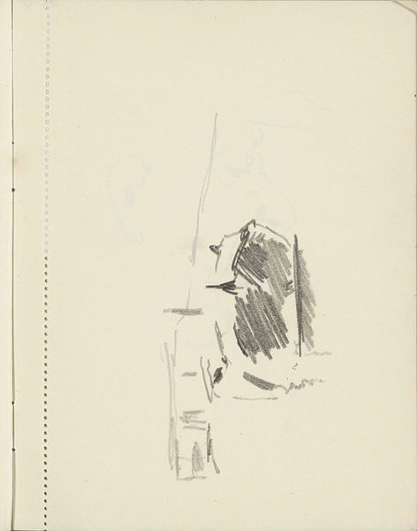 Curator: Here at the Rijksmuseum, we have a quick pen-ink sketch dating back to about 1930 by Carel Adolph Lion Cachet, called simply, "Stoel," which is Dutch for "chair." Editor: I find myself oddly charmed by its simplicity. It's just a single, unadorned chair rendered with these incredibly delicate lines. It almost feels like a forgotten thought captured on paper. Curator: It's from one of the artist's sketchbooks, isn't it? These were the types of loose drawing captured as potential future studies and paintings, or they are purely exercises that might illuminate aspects of the artist's process. Editor: Absolutely! It gives the feeling that he’s designing in real-time, which in and of itself feels like an expression of the freedom, a lack of restriction. Do you see the decoration around the chair seat’s supports? He is giving it that vintage Dutch flourish while keeping with the rest of his overall, economical style. It is amazing! Curator: It certainly shows a departure from his more widely known decorative arts style, leaning here into early modernist sensibilities of line and reduction of detail that came to define the post-war years. Editor: You're right. It does possess that minimalist sensibility, focusing more on form and utility over ornamentation. But that’s why I keep circling back to that flourish. It feels almost satirical. Curator: Maybe we should ask him? I mean, if that were possible... Sadly, Cachet passed in 1945, but thankfully he’s left this enigmatic little riddle for us to consider. It underscores the fact that art never exists in a vacuum. The push and pull of various aesthetic currents were happening simultaneously, something that is so beautifully revealed within the intimate sphere of an artist's personal sketchbook. Editor: Well said. I think I might add to that and simply say it underscores the ongoing experiment of living in any moment of historical time, be that then or now. It may just be a chair but it's a symbol of existing and experimenting.