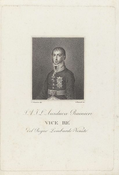 Curator: Here at the Rijksmuseum, we're standing before a portrait of Friedrich Wilhelm III, King of Prussia. This print, an engraving, was created sometime between 1797 and 1828 by Friedrich Ludwig Neubauer, placing it firmly in the Neoclassical period. Editor: It’s interesting—I’m immediately struck by the rigid formality. He seems very buttoned up, almost a mask of power rather than a human face. It’s monochrome adds to that sense of austerity. Curator: The austerity absolutely reflects the artistic and political climate of the time. Neoclassicism was, in part, a reaction against the excesses of the Rococo, and Friedrich Wilhelm was a ruler known for his focus on military and administrative reform, less about lavish courtly life. The portrait is definitely presenting a specific image to the public. Editor: I see that. The details, though restrained, emphasize symbols of authority—the meticulously rendered military attire, the medals, and even the slightly idealized features contribute to an image meant to convey strength and legitimacy. It evokes an idea, a sort of Prussian ideal. Curator: Precisely! And prints like these played a critical role in disseminating that ideal. Engravings allowed for mass production and distribution, so these images would have been widely circulated, reinforcing the King’s image and authority throughout his kingdom and beyond. This accessibility also makes this a potent propaganda tool. Editor: Considering its purpose as a propaganda tool, it also raises an interesting tension for me. The king appears serious but distant. What message was intended? A father-like strength to rely on or the unapproachability of a higher figure? Curator: That's a very astute question. Both messages were likely intended. By presenting an image of unshakeable authority, but without seeming overtly aggressive, Neubauer's print successfully projects royal command. Editor: Looking at it with that insight definitely shifts the mood. It seems much less cold, perhaps an intentional visual paradox! I had focused on its face value without seeing it as the representation of Prussian leadership itself. Curator: It’s easy to miss those layers. Visual and cultural associations play important roles in our interpretations of it and historical objects, making artworks speak in different tones across time. Editor: Thanks for guiding me on how those layers worked! Curator: My pleasure. It is this journey of historical understanding through artifacts and artworks that makes exploring collections like ours endlessly fascinating.