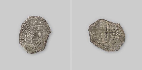 Curator: Here we have a fascinating artifact, a "Reaal van achten" dating back to 1716. It was minted in Mexico, but originates from the wreck of the Dutch East India Company ship "t Vliegend Hart". It's currently held at the Rijksmuseum. Editor: The immediate impression is one of wear, like a relic, its shape irregular. The designs are stamped into its corroded surfaces and they are strangely touching in their now faded assertion of power. Curator: Absolutely. The Baroque period witnessed the apex of global trade and colonization. These coins, produced in the Spanish colonies from silver mined and extracted locally, were crucial for that global exchange. To me it seems quite telling that one of these objects washed up on a Dutch ship and is now housed in Amsterdam. Editor: Yes, the colonial implications are powerful here, aren't they? This coin's journey, from Mexican mines to a sunken Dutch ship, and finally to the Rijksmuseum, speaks volumes about exploitative networks of power and extraction during the early modern period. Curator: Indeed, these silver coins served as currency but also symbolized the political influence and economic expansion of the Spanish Empire. Minted from local materials and labor, they were a key feature in facilitating international commerce and projecting royal authority far across its overseas territories. Editor: It’s also interesting how the ocean, that initial facilitator of colonial expansion, becomes a place of failure. The shipwreck, that chance event that sunk this Dutch trade vessel carrying a valuable bounty of Mexican minted coins, reminds us that any economic and political dominance based on greed is as fragile as the ships crossing those seas. Curator: A shipwreck definitely invites multiple interpretations. We see it now not merely as currency but as material testament to ambition and risk during the Baroque. These coins bear markings of a society shaped by commercial appetite and exploration. Editor: For me, that is precisely the emotional power of this small and imperfect object; to speak volumes on capitalism, environmental extraction, historical inequalities, colonialism and contemporary loss. A very tiny lens offering great vision. Curator: Indeed. This coin makes the grand narratives feel so tangibly real, connected to our shared history, and to contemporary questions.