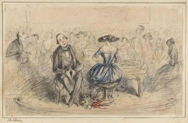 Elihu Vedder created this pencil sketch, "Father and Son II," without a specific date, capturing a timeless tableau of human interaction. It's evocative of a scene outside time. The drawing juxtaposes the themes of departure and congregation: a father and son walking away, contrasted with a group of women gathered around a well. Vedder made this work during a period when American artists were increasingly engaging with European artistic traditions. It's as though he's re-imagining the kind of Old Masters genre scene that would have been seen in a museum. The well, a traditional meeting point, becomes a stage for social exchange and communal life. The women's postures and gestures suggest a narrative, one of shared experience and support. The men going the other direction, in a hurry and in search of something, stand apart from the village community. Art history offers us lenses to understand works like this in relation to their time. For instance, studying Vedder's artistic influences and social context could further illuminate the work's subtle social commentary.