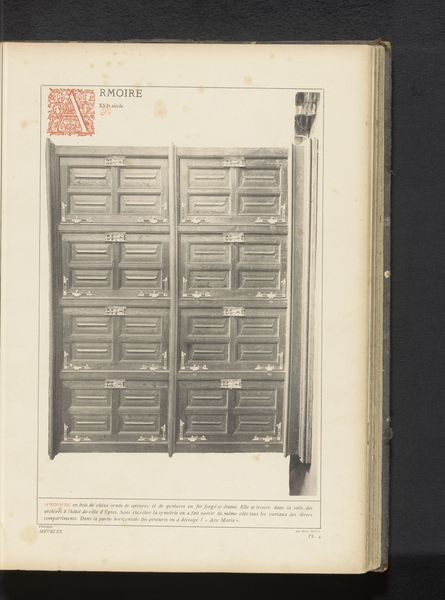 Editor: This drawing shows ornately decorated oak doors from St. Martin's Church in Ypres, Belgium. The date is prior to 1887. The verticality of the statues combined with the horizontality of the doors' panels is interesting, creating a somber and grand atmosphere. What stands out to you in this piece? Curator: It's fascinating how the geometric and figural elements interact, isn’t it? Doors in sacred spaces have always been potent symbols, serving as liminal spaces, thresholds between the mundane and the divine. Consider the choice of oak. What does oak traditionally represent in European iconography? Editor: Strength and durability, right? It’s a very solid, grounded kind of wood. Curator: Precisely! Now think about these figures positioned along the doorway. Who do you imagine they represent, and how do they function within the architectural and symbolic framework? Consider the gestures they are making; what emotions or messages do they express? Editor: Perhaps saints, warding off the unholy or welcoming those who enter with piety. Their postures and what they hold probably tells us a lot. I imagine the overall impression, these doors, communicate power and the church's role as a protector, too? Curator: Absolutely. Furthermore, it underscores how artistic vision perpetuates and interprets cultural narratives across generations. These doors, beyond their immediate function, invite contemplation on faith, power, and the endurance of cultural memory. Editor: This makes me think about how even the smallest details can speak volumes about a society's beliefs and values! Curator: Indeed! Every line and curve in this drawing captures the artist’s attempt to reveal the church’s visual conversation that spans through time.