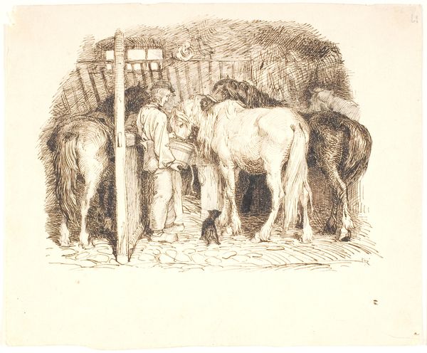 Jessie Willcox Smith created this image, "The collar was almost the worst part of the Business," likely in the early 20th century. It depicts a young boy struggling to fit a collar onto a horse in a stable. Smith was one of the most successful female illustrators in America, whose work often appeared in books and magazines. Her focus on children coincided with a wider cultural shift towards understanding childhood as a distinct and valuable stage of life. This image might reflect a nostalgic view of rural life, and the relationship between humans and animals. By examining the journals and letters of families from this period, we can learn more about the values and social conditions that shaped such imagery. Perhaps it was the experience of this kind of care work that Smith wanted to explore, representing an exchange between a child and an animal that stands apart from the growing industrialisation of the time. Art can offer an important window into understanding social life.