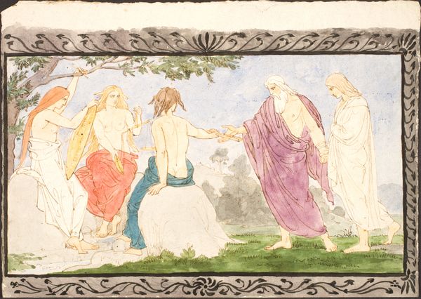 Károly Lotz created this sketch for a fresco, a medium often employed to decorate public and religious spaces, reflecting the cultural values of his time. Lotz was working in a period of significant social and political change in Europe with rising nationalism, and evolving ideas about identity and representation. This sketch depicts a scene reminiscent of classical mythology, with female figures attending to a central, possibly divine, female figure. The attention to the female form, set in a lush, natural environment, complicates how we see gender and power represented. There’s a softness in the way Lotz approaches the human figure. The almost dreamlike quality invites us to consider the emotional landscape of the scene. Lotz, who lived in a society grappling with questions of national and cultural identity, here seems to be engaging with timeless themes of beauty, care, and the idealized female form. The fresco allows us to reflect on historical expectations of women, and also appreciate the intimate, gentle aspects of the scene.